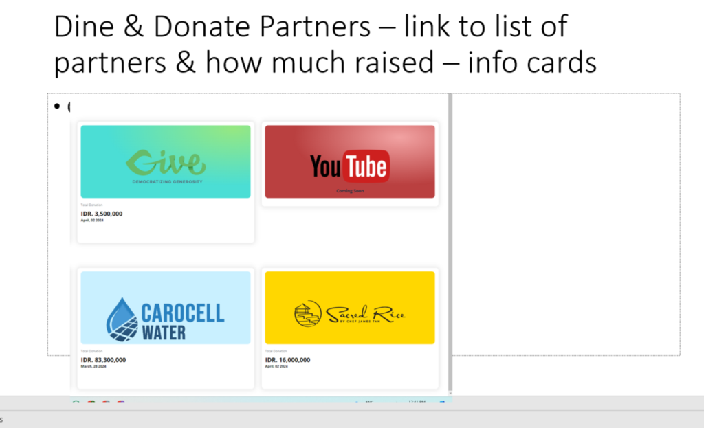 To enhance the visibility and effectiveness of your “Dine & Donate” initiatives, you can create a dedicated page on your NGO’s website, mirroring the format used for your donation section. This separate page should prominently feature the logos of participating partner restaurants, details of upcoming and past events, and a running total of the funds raised through these events.