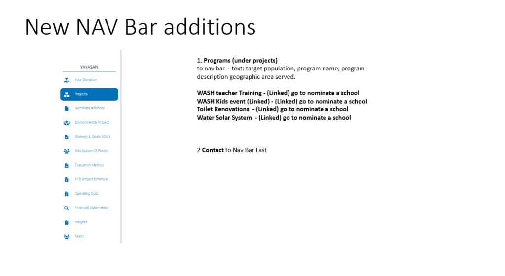Create new menu “Program” under Projects and also “Contact” for last menu